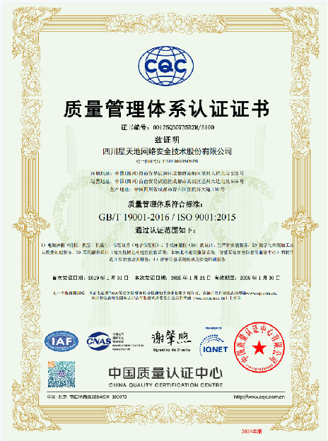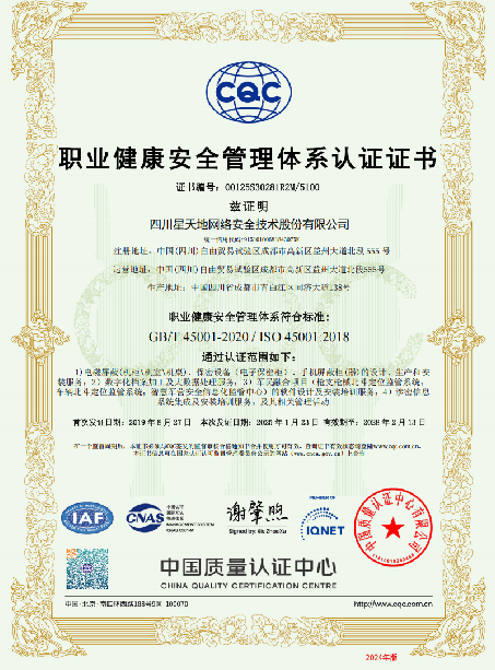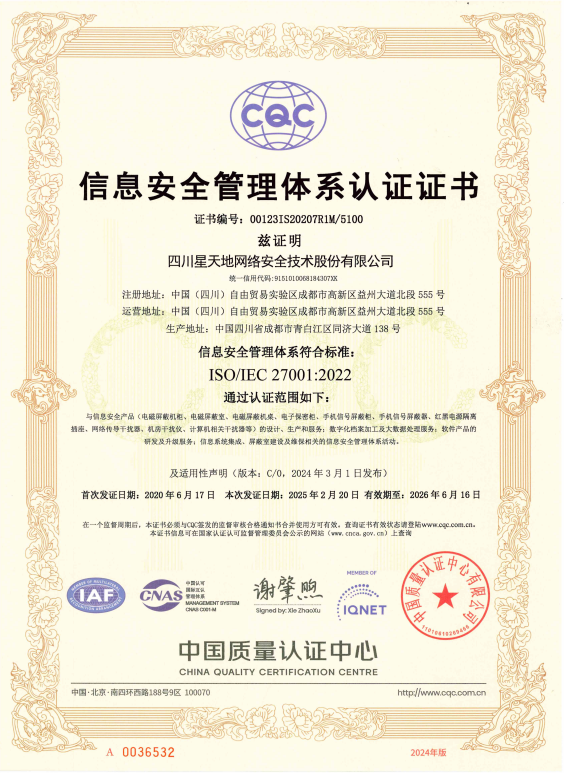 信息安全管理体系认证证书